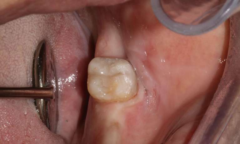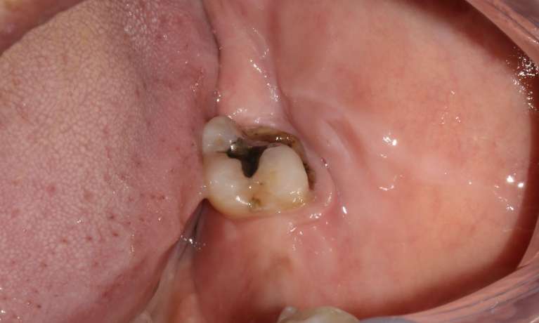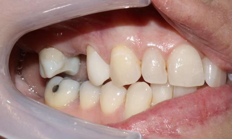 A porcelain crown was placed to restore the tooth’s shape and function.
